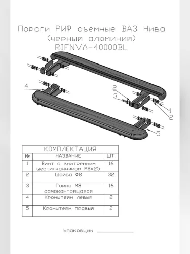| Наименование | Пороги РИФ силовые ВАЗ Нива черные rifnva-40000-b в Слюдянке Иркутской области |