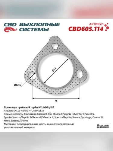 | Наименование | Прокладка KIA Rio Spectra Carens Shuma выхлопной системы CBD в Слюдянке Иркутской области |